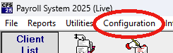 - Find where your Payroll System data path is located by clicking Configuration from the main program screen of the year of Payroll System you're experiencing the error: