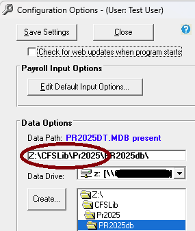 - Your data path will be displayed (in this example, it's Z:\CFSLib\Pr2025):