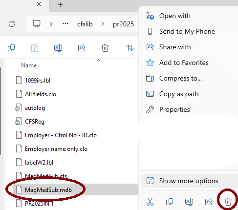 - If the MagMediaSub.mdb exists, delete it (right-click on the file, then left-click "Delete"). Ensure you scroll through all the files in the folder to check for it. If the file isn't there, continue to the next step.