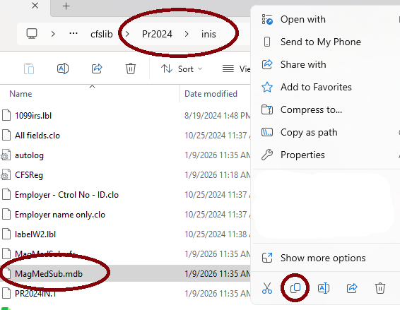 - Locate the MagMedSub.mdb file, right-click on it, and left-click "Copy" (or the copy icon):