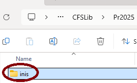 - Now, navigate to the "inis" folder in the data path (in the above example, it would be Z:\CFSLib\Pr2025\inis):