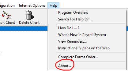 - Find where your Payroll System program path is located by clicking Help then About from the main program screen of the year of Payroll System you're experiencing the error:
