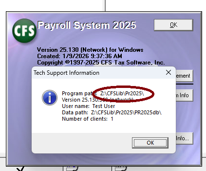 - Find where your Payroll System program path is located by clicking Help then clicking About from the main program screen of the year of Payroll System you're experiencing the error: