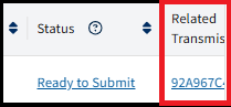 Historic Receipt ID Link: A historic receipt ID will populate with the receipt ID of the parent transmission for corrected records. Clicking it will send you to the View Submitted Forms Details page for the parent transmission.