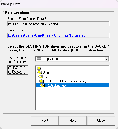 CFS software can backup to cloud storage services (e.g. Microsoft OneDrive, Google Drive, DropBox) upon program exit.