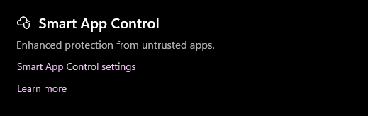 - Select Smart App Control Settings.