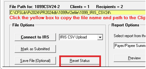 - Then click Reset Status, then click Yes. The Payers and their forms will then return to the Step 2 tab.