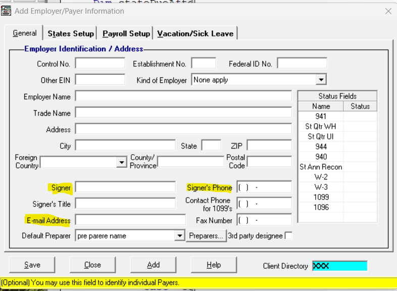 Beginning Tax Year 2025, the BSO has new requirements for electronic submissions. If you try to create an e-file without all the required information filled out, you will receive an e-file W-2 Data Error: "Specific Information that is required to file an information return is missing. All errors must be corrected before the file can be created":