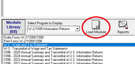 - If a module has been selected, then choosing the Load Module button will open that module for saving in the current client's folder.
