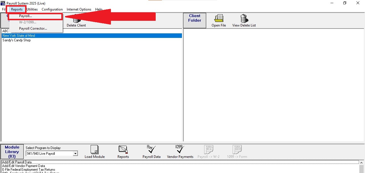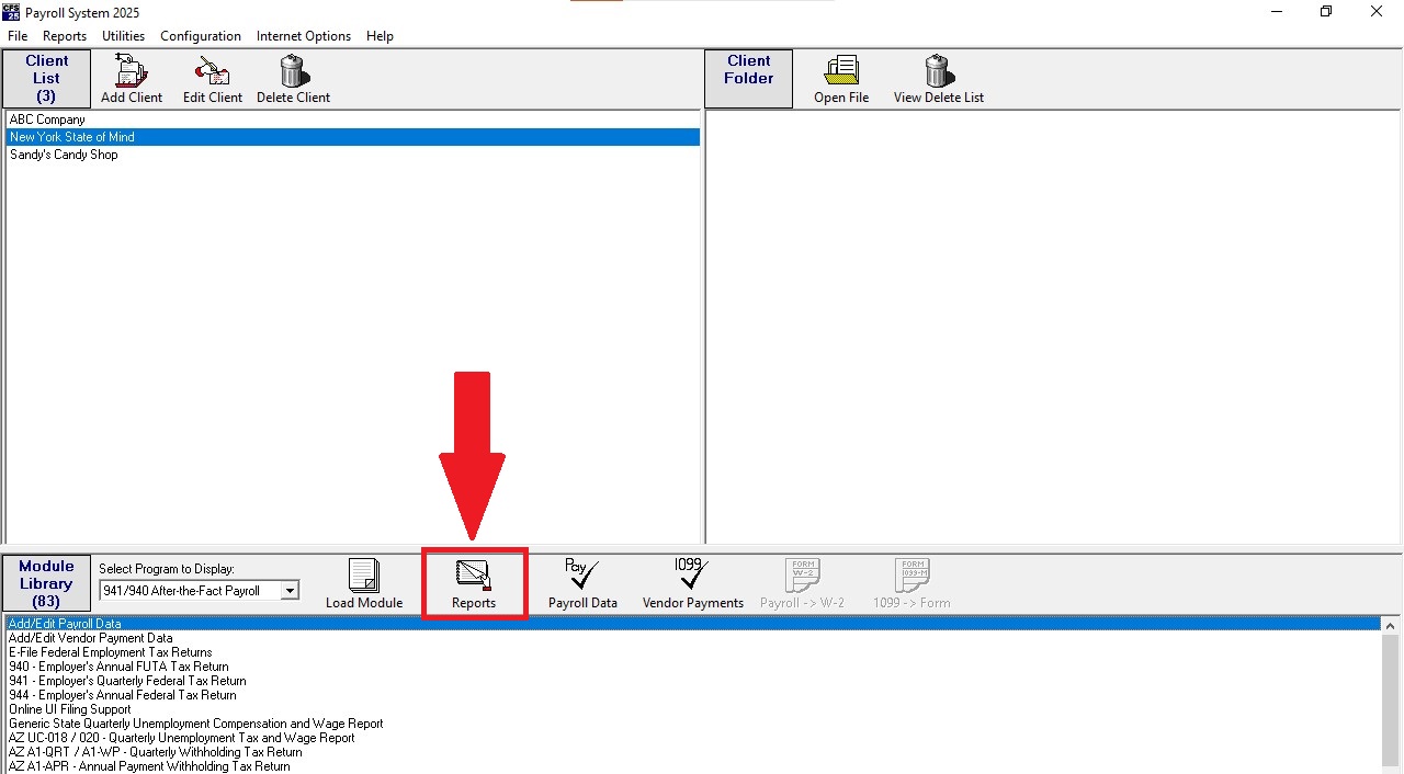 - Summary reports for 941/940 and state liability payroll data may also be printed. These reports include all payroll entered to date for the current employer.